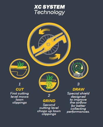به وسیله این سیستم، عملیات برش و مکش چمن، به راحتی انجام میشود و تیغه دولایه، باعث انجام برش دوبل میشود. در واقع دبل کات، بهترین راهحل برای کسانی است که چمن بیعیب و نقصی را پس از عملیات نگهداری فضای سبز انتظار دارند. برش دوبل توسط تیغه دولایه، عملکرد سیستم جمعکننده چمن را تا 20% افزایش میدهد.