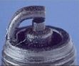 ظاهر سر شمع: سر الکترود مثبت و منفی به همراه سر سرامیکی آن به وسیله لایه ضخیمی از خاکستر طلایی مایل به سفید پوشانده شده است.