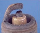ظاهر سر شمع: الکترود مثبت و منفی دفرم شده و سرامیک سر شمع شکسته یا پریده است.
