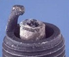 نتیجه: ریپ زدن، افت قدرت موتور به دلیل عایق شدن سر شمع با خاکستر.