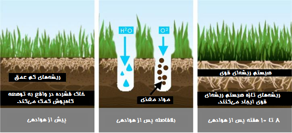 بهار و پاییز بهترین فصول اجرای هوادهی هستند. اجرای هوادهی قبل یا دیرتر از زمان کوددهی، رشد ریشه را بهبود میبخشد و رشد تاج چمن را در بهار افزایش میدهد.