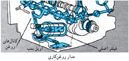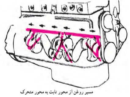 مدار روغنکاری موتور با توجه به قطعاتی که نیازمند روغنکاری هستند در چند مسیر منشعب میشود که عبارت اند از: