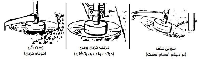 توجه: برخورد هد نخ با زمین در حین اجرای عملیات میتواند منجر به آسیب دستگاه علفتراش شود.