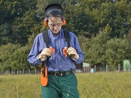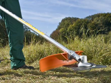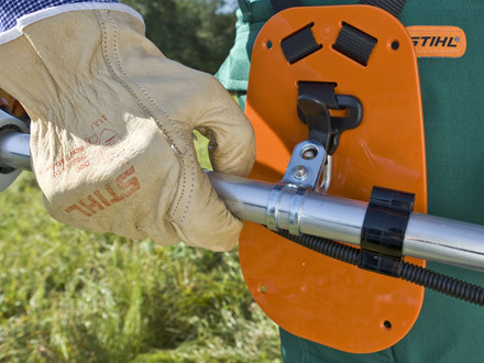 دستههای فرمان را تنظیم کنید و حلقهی حمایل را در طول شافت انتقال قدرت حرکت دهید تا دستگاه به حالت بالانس قرار بگیرد. مجموعه برش باید در فاصله 3 الی 5 سانتیمتری سطح زمین قرار گیرد. زاویه برش بهینه به طور اتوماتیک در حالتی که دستگاه در حالت بالانس باشد ایجاد میشود.