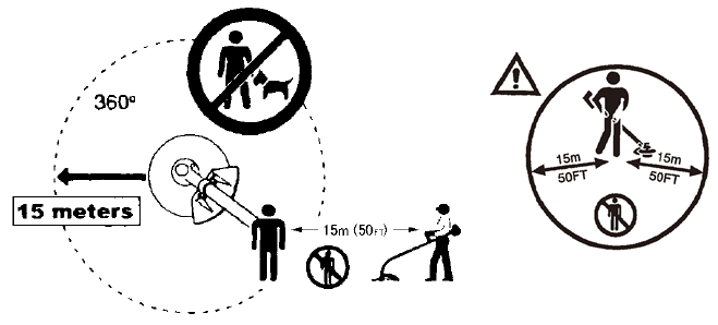 دستگاههای علفتراش بسیار پر قدرت هستند و اگر نکات ایمنی را رعایت نکنید با خطرات زیادی مواجه خواهید شد. هرگز از دستگاه فاقد بند حمایل استفاده نکنید و به یاد داشته باشید که دستگاه باید از محل فرمان یا دسته (حلقهای یا دو چرخهای) در دست گرفته شود. فرمان یا دسته امکان کنترل و هدایت دستگاه را برای شما فراهم میکند و نیز به عنوان مانعی که از بروز بسیاری آسیبها پیشگیری میکند نباید از دستانتان رها شود. در حین کار همیشه از محافظ صورت و عینک ایمنی استفاده نمایید، چرا که چرخش تیغه با دور بالا میتواند اجسام مختلفی که با تیغه برخورد میکنند را به سمت شما پرتاب نماید. و همیشه مراقب افرادی که در اطرافتان هستند باشید که در فاصله ایمن از شما و دستگاه مستقر شده باشند.