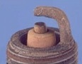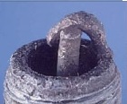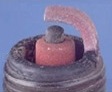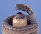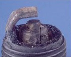 ظاهر سر شمع: الکترود مثبت و منفی دفرم شده و سرامیک سر شمع شکسته یا پریده است.
