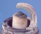 ظاهر سر شمع: معمولا الکترود مرکزی شمع کاملا و یا تا حد زیادی از بین رفته و لبه های آن گرد شده و چینی دور الکترود سوخته است.