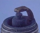 ظاهر سر شمع: الکترود مرکزی و منفی شمع ذوب شده، چینی سر شمع صدمه دیده است.