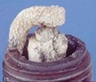 ظاهر سر شمع: سر الکترود مثبت و منفی به همراه سر سرامیکی آن به وسیله لایه ضخیمی از خاکستر طلایی مایل به سفید پوشانده شده است.