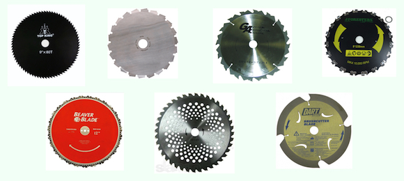 این نوع از تیغهها مجهز به دندانههای تیزی در محیط خود هستند و با تراشیدن علفهای پیش رو توسط این دندانهها عملیات برش را اجرا میکنند. همه انواع این تیغهها مدور با تعداد متفاوتی دندانه روی محیط هستند. این دندانهها میتوانند بخشی از تیغه باشند و یک خمیدگی رو به بیرونبرای شبیهتر شدن به واحدهای برنده زنجیر اره موتوری داشته باشند. در نوعی از این تیغهها، واقعا یک زنجیر اره در بین دو دیسک عمل برش را انجام میدهد. در حال حاضر، نوک اکثر این تیغهها را از تنگستن میسازند و قیمت آنها در طول سالها به میزان قابل توجهی کاهش یافته است.