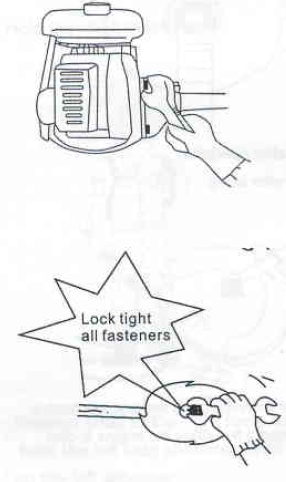 - دستگاه را کاملا تمیز کنید، مخصوصا، مخزن سوخت و صافی هوا.