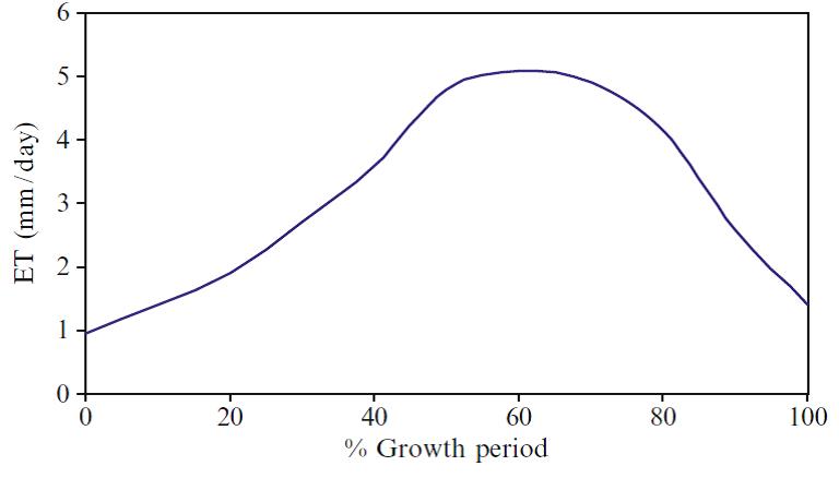 نمونهای از الگوی تغییرات نیاز آبی در طول فصل رشد