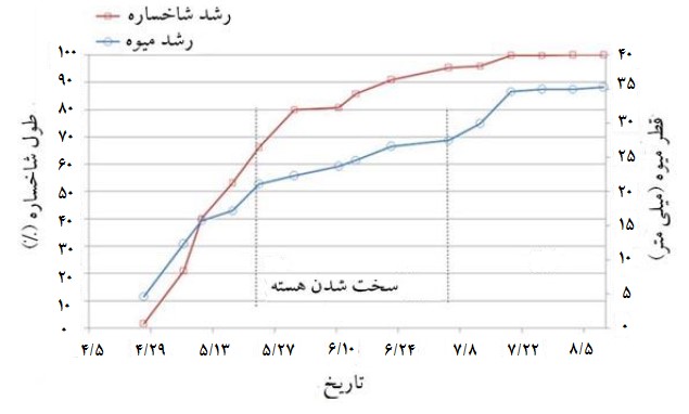 شکل 3 منحنی رشد میوه و شاخساره در هلو