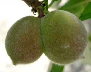 شکل 5 چپ: اثر تنش آبی در شکاف میوه هلو. راست: اثر تنش آبی و گرما در دوقلویی میوه هلو
