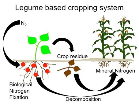 شکل2: تثبیت نیتروژن از طریق تجزیه بقایای گیاهان خانواده لگوم