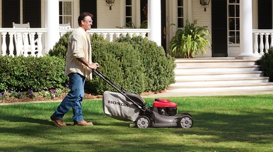 جمع کردن برگها در کیسهی چمنزن