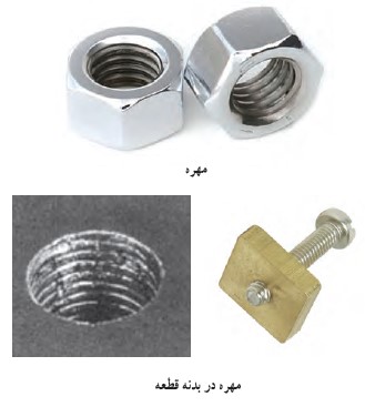 مهرهها دارای سوراخی هستند که داخل آنها رزوه شده است و قطر ته دنده آنها معادل قطر سر دنده پیچ می باشد. مهرهها برای بستن و مهار کردن اتصال های پیچی به کار می روند. در قطعات مکانیکی با حدیده کردن سوراخ ایجاد شده روی قطعه مهره ایجاد میکنند تا پیچ در آن بسته شود. توجه کنید برای انکه مهره بتواند روی پیچ بسته شود باید از نظر مشخصات (گام دنده، قطر پیچ و...) همانند پیچ باشد. مثلا اگر پیچ M10 باشد مهره هم باید M10 باشد.
