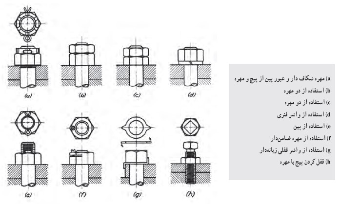 شکل 3: روشهای جلوگیری از باز شدن مهره