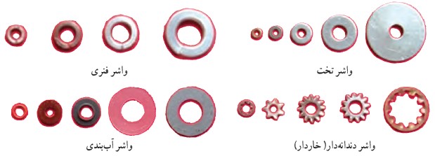 از واشرها برای افزایش سطح درگیری و توزیع فشار بر سطح اتصال و جلوگیری از باز شدن پیچ و مهره و آب بندی محل بستن پیچ و مهره استفاده می شود. واشرها با توجه به قطر پیچ انتخاب شده و روی پیچ و یا زیر مهره قرار می گیرند.