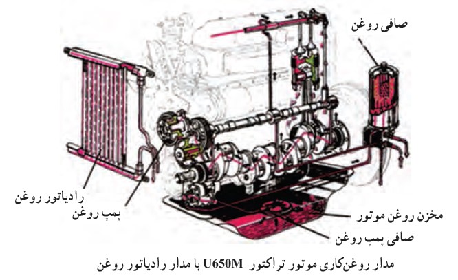 در بعضی از موتورها روغن بعد از خارج شدن از صافی روغن وارد رادیاتور روغن شده و پس از خنک شدن به مجرای اصلی روغن وارد میگردد.