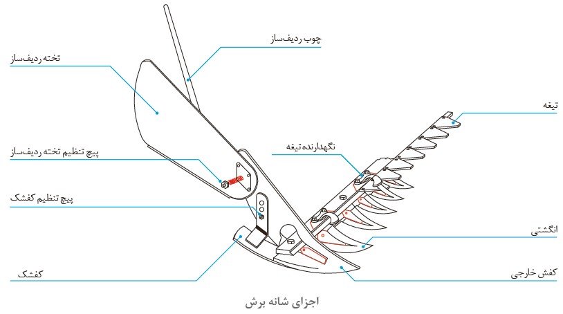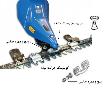 تیغههای شانه برش بر اثر شل شدن میخ پرچ ها، جلو آمدن پشت بند، سرعت زیاد حرکت و برخورد با موانع و یا کند بودن بیش از حد ممکن است بشکند. تیغه شکسته را باید تعویض نمود.