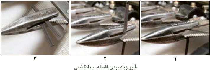 مناسب ترین فاصله 13-10 میلی متر است. در صورت زیاد بودن فاصله، از یک چکش مناسب استفاده کرده و با چند ضربه بر روی لبه، فاصله را تنظیم کنید. اگر فاصله کم است با استفاده از قلم، که بین لب انگشتی و کف انگشتی اهرم میکنید، فاصله را تنظیم کنید. باید دقت کنید که بیش از اندازه، دهانه را باز نکنید که احتمال شکستن آن وجود دارد.